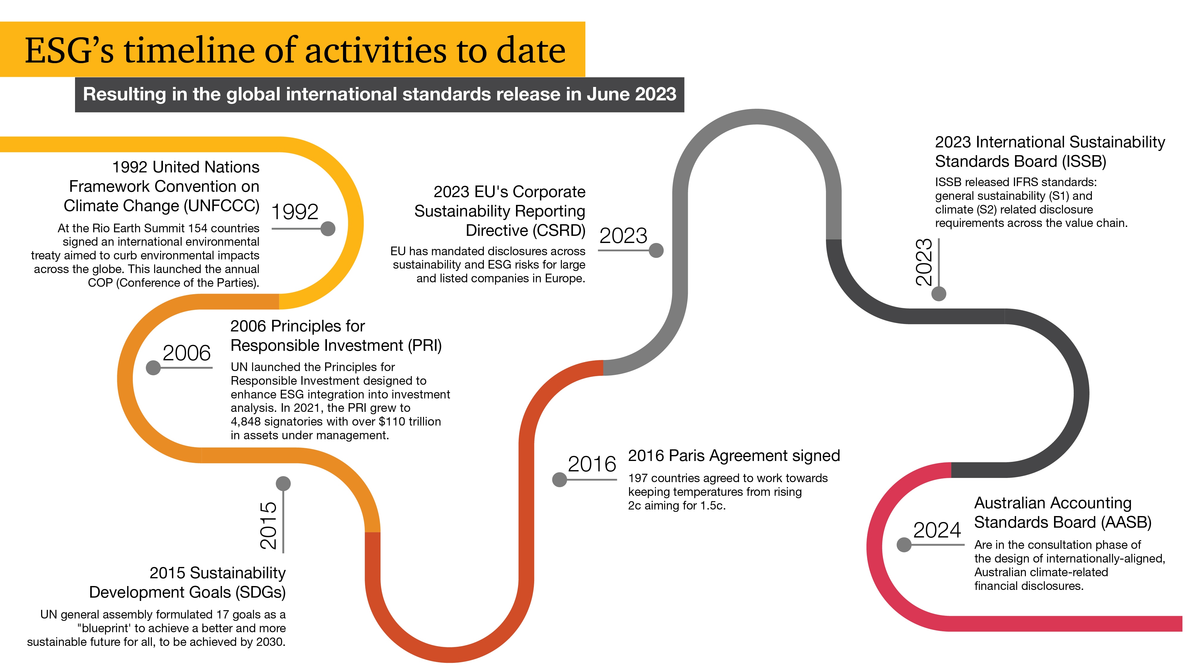Additionally, Australia is in the process of adopting mandatory climate reporting standards, based on the recently released International Sustainability Reporting Standard IFRS S2. These are expected to apply from as early as July 2024 to large companies, and extend to all financial reporting entities over the following three years.